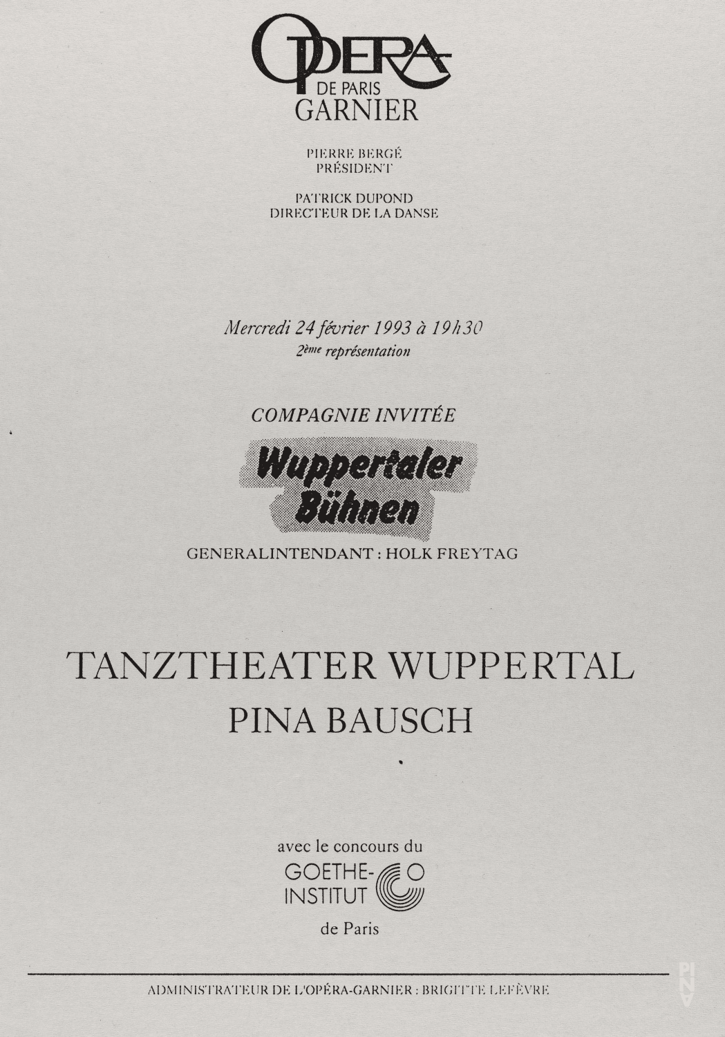 Evening leaflet for “Orpheus und Eurydike” by Pina Bausch with Tanztheater Wuppertal in in Paris, Feb. 24, 1993