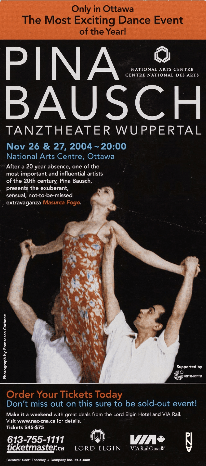 Flyer zu „Masurca Fogo“ von Pina Bausch mit Tanztheater Wuppertal in Ottawa, 26.11.2004–27.11.2004