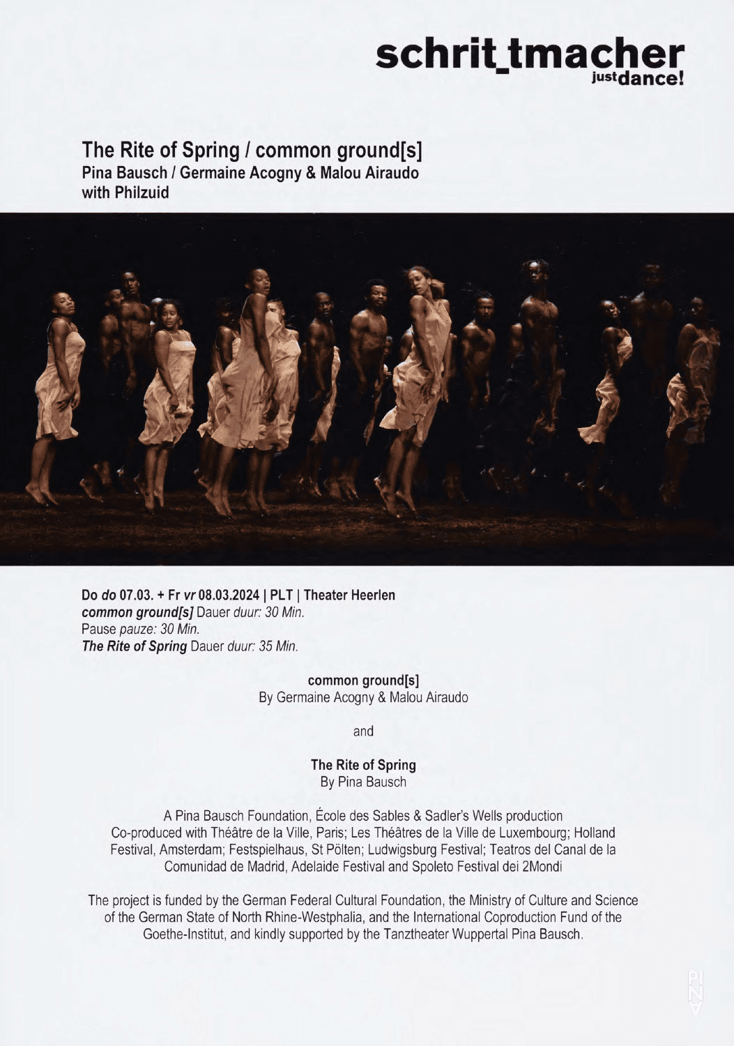 ![Programmheft zu „Das Frühlingsopfer“ von Pina Bausch mit Ensemble Rite of Spring und „common ground[s]“ von Germaine Acogny und Malou Airaudo mit Germaine Acogny & Malou Airaudo in Charleston, 02.02.2024–03.02.2024](/_next/image?url=https%3A%2F%2Farchives.pinabausch.org%2Fmedia%2Fcache%2Fpdf_posters%2Fgenerated_poster_image_mult_20240202_61_0000_600.pdf.jpg.1500x1500_q85.png&w=2048&q=75)