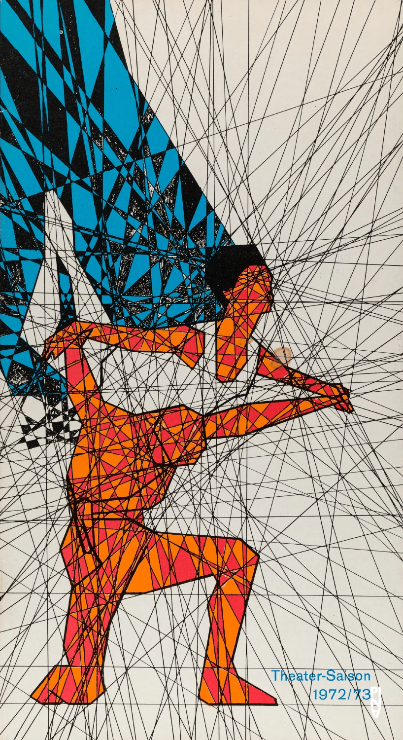 Spielzeitprogramm zu „Fragment“, „Im Wind der Zeit“ und „Nachnull“ von Pina Bausch, „575 Riverside-Drive“ von Anna Mittelholzer, „Augure“ und „Zwei Aspekte“ von Katharine Inge Sehnert und weiteren in Düsseldorf, Spielzeit 1972/73