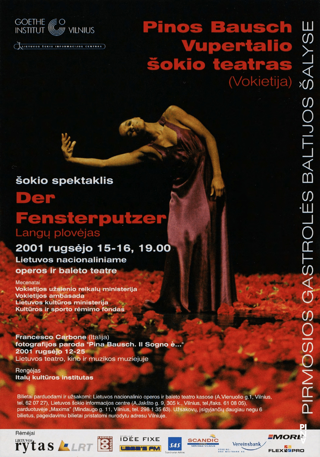 Prospectus pour « Der Fensterputzer (Le laveur de vitres) » de Pina Bausch avec Tanztheater Wuppertal à Vilnius , 15 sept. 2001 – 16 sept. 2001