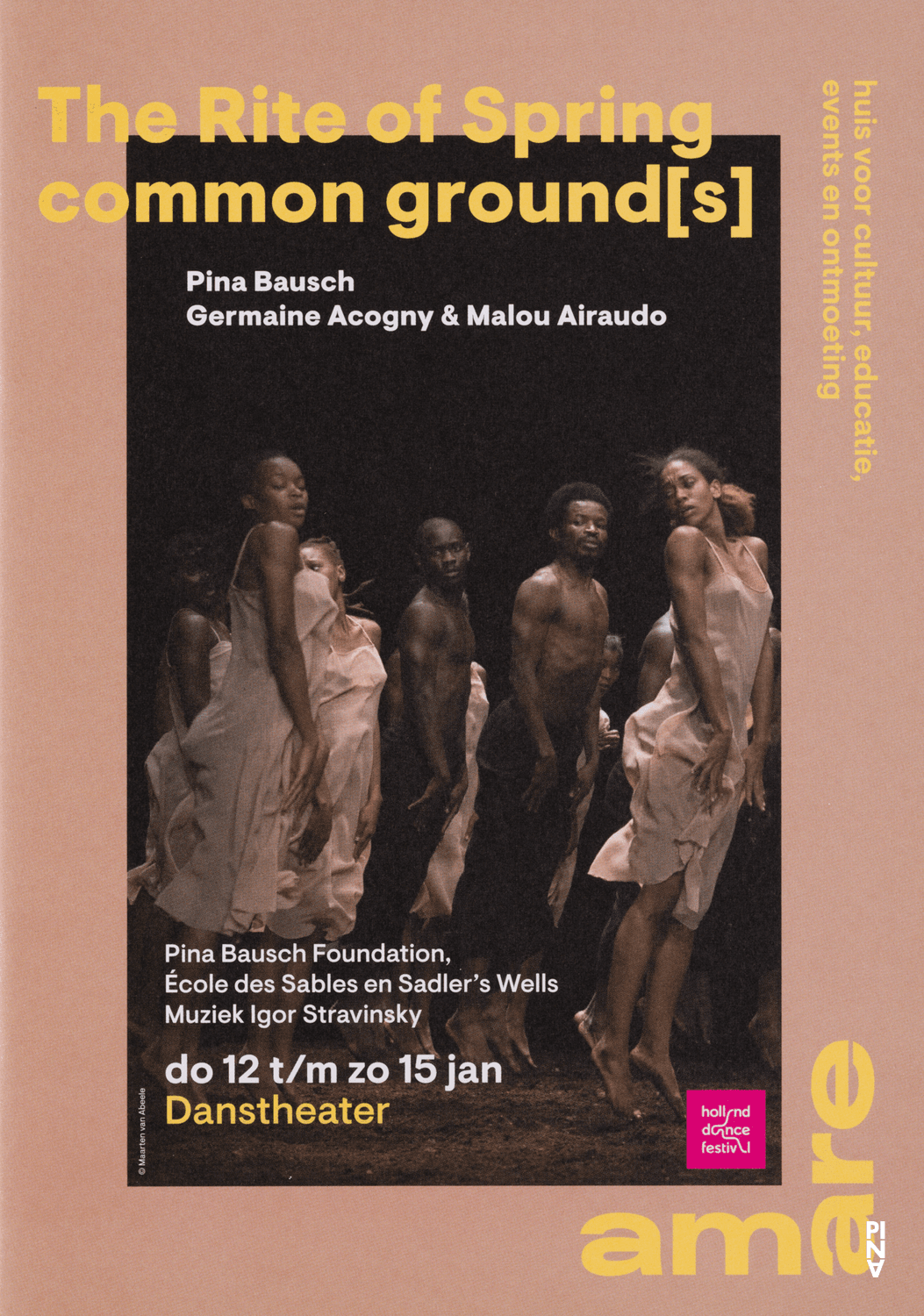 Programme pour « Le Sacre du printemps » de Pina Bausch avec Ensemble Sacre du Printemps et « common ground[s] » de Malou Airaudo et Germaine Acogny avec Germaine Acogny & Malou Airaudo à La Haye, 12 jan. 2023 – 15 jan. 2023